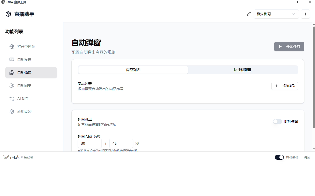 支持创建多组账号配置,每个直播间可独立设置自动回复话术、商品弹窗规则和互动策略。