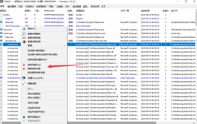 1、进入软件之后就可以在进程界面看到很多正在运行的程序。