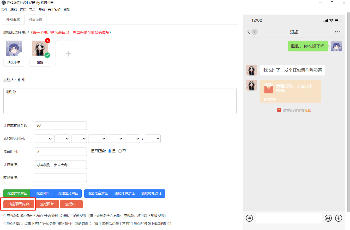 微信对话生成器高级版怎么清空聊天内容