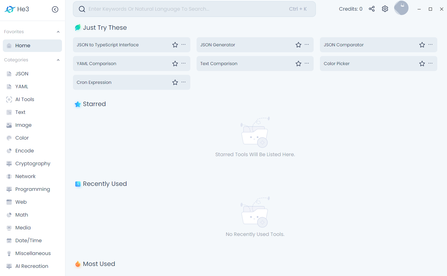 He3是一款开放智能的开发者工具箱,软件里包含了五百多种实用的工具,基本上涵盖了各种开发语言和环境,满足用户的使用需求。用户能通过搜索的方式来获取自己想要的工具,而且每个工具的功能都有说明,新手也能快速上手。