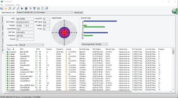 WirelessMon是一款无线网络检测工具,帮助用户实时查看周围WiFi信号的强度、速度和覆盖范围。它能扫描识别不同网络的名称、信号频率及设备连接情况,分析干扰源并提示优化建议。通过简洁界面,用户可快速定位信号盲区或拥堵区域,调整路由器位置或频道提升连接质量。适合家庭、办公场景,无需技术背景即可改善网络环境,解决卡顿、断连问题。