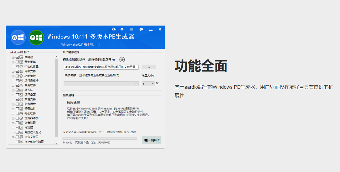 斗鱼PE生成器结合丰富的组件集成和友好的用户界面,成为不少用户的首选PE制作工具,其特色在于解决传统PE工具功能固定的痛点,提供从快速生成到深度定制的全流程解决方案,尤其适合需要灵活配置和高效维护的场景。