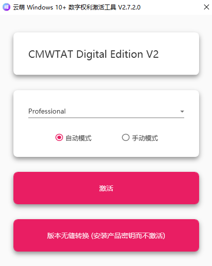 云萌Windows10激活工具是一款功能非常强大的电脑系统激活工具,这款软件当中采用了非常先进的算法以及技术能够帮助用户将自己的windows10系统版本来进行激活,使得电脑能够正常运行获得更多的使用功能。