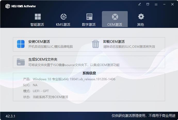 3、点击OEM激活,开机自动加载SLIC,模拟品牌电脑。