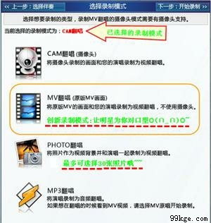 3、选择CAM翻唱的录制模式,可以把你的人像录进去。