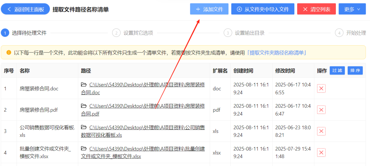 2、选择需要进行清单提取的多个文件,支持选择各种格式的文件。