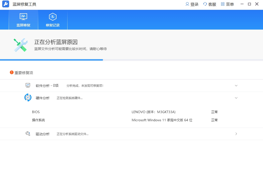 一旦自己的电脑当中存在蓝屏的情况,就可以通过扫描来快速进行电脑故障的排除。
