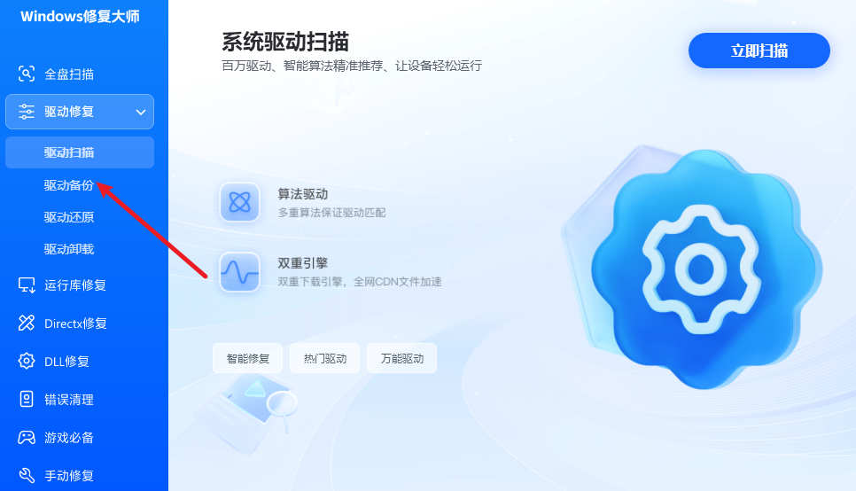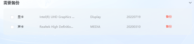 2、随后软件就会自动对驱动进行检测,检测完成后就哭选择需要备份的显卡。