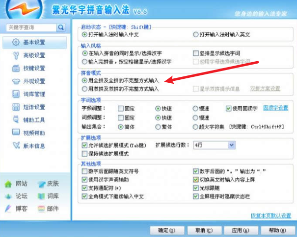 2、接着找到拼音模式,就可以选择全拼或是双拼模式来进行输入了。