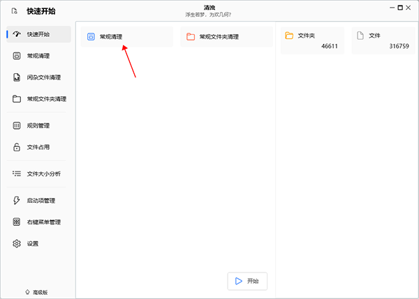 1、在本站下载清浊官方正版下载,打开软件,点击常规清理。