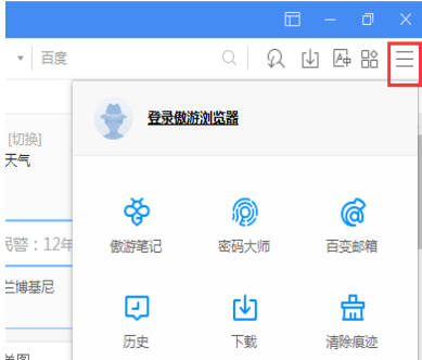 1、在本站下载傲游浏览器最新版,打开软件,点击右上角菜单。