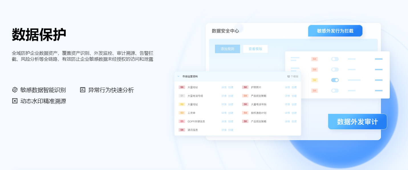 4、多渠道外发监控:发送数据的时候会先检测,检测到违规数据则会及时拦截发送。