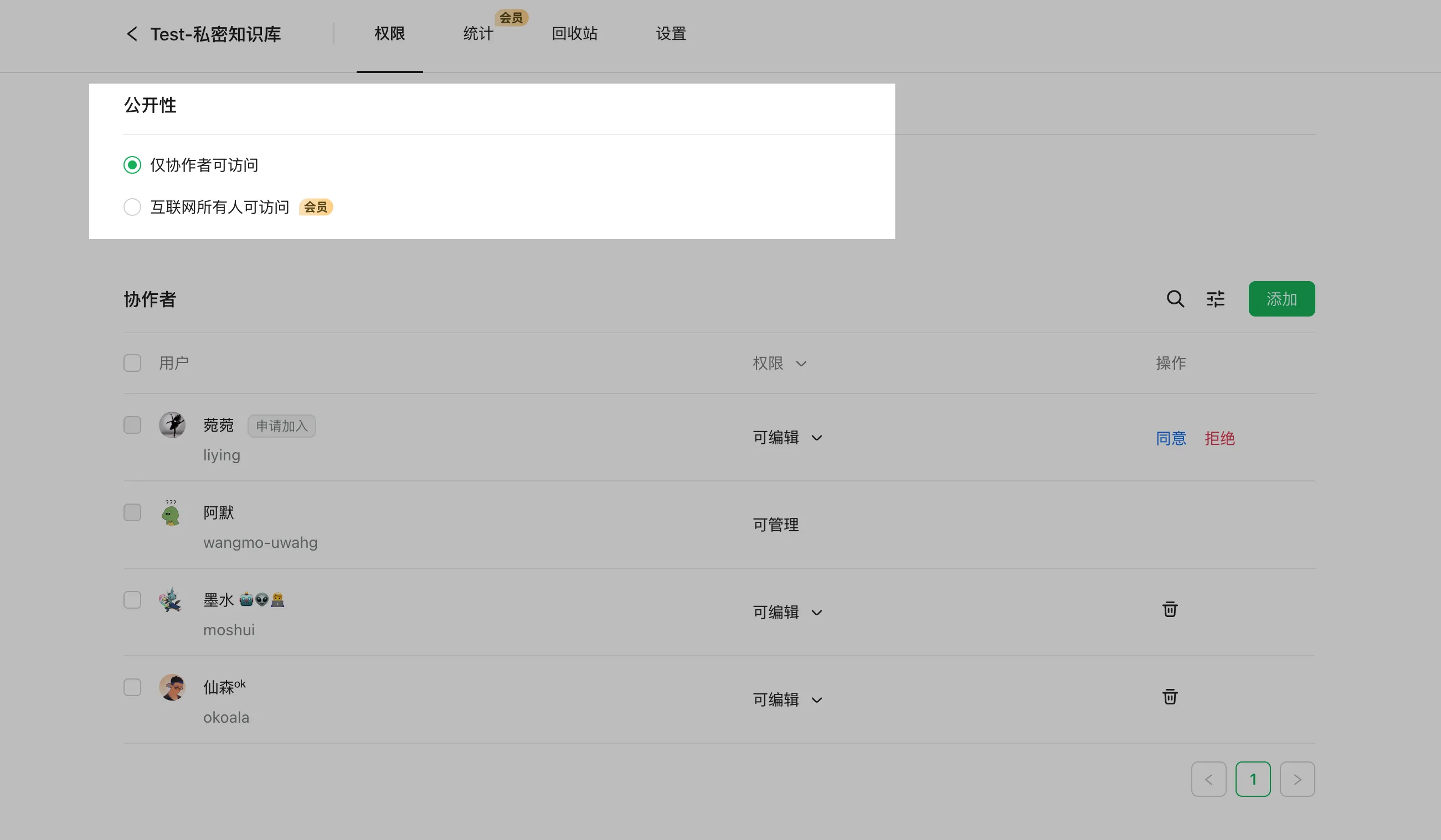 3、精细化权限管理:对文档和成员都设置上权限,仅允许指定的人去编辑文档。