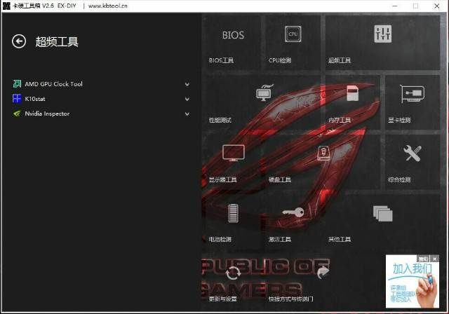 内置硬盘检测网络修复CPU超频等十余项实用工具,无需额外下载。