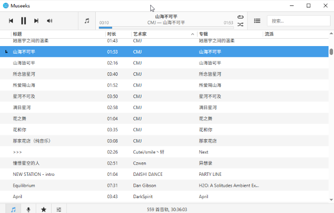 Museeks是一款相当优质的音乐播放器,可以轻松的帮助用户对个汇总类型的营业进行播放和处理,可以轻松的进行使用和操作,带来了相当优质的使用效果,带来了非常优质且独特的使用体验,可以更好的去进行操作和处理,满足不同的音乐播放的需要,快来下载试试吧!